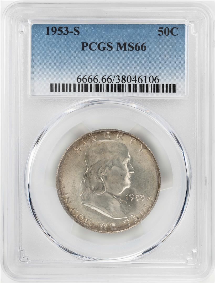 One 1953-S Franklin Half Dollar Coin PCGS MS66. PCGS Graded.
