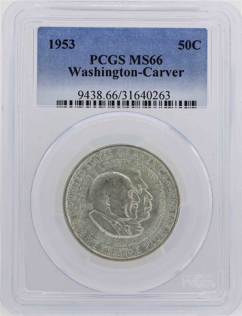 One 1953 Washington-Carver Centennial Commemorative Half Dollar Coin PCGS MS66. PCGS Graded.