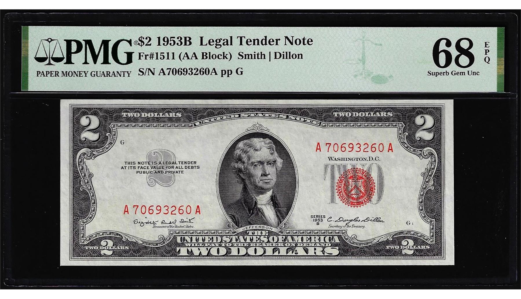 1953B $2 Legal Tender Note Fr.1511 PMG Superb Gem Uncirculated 68EPQ