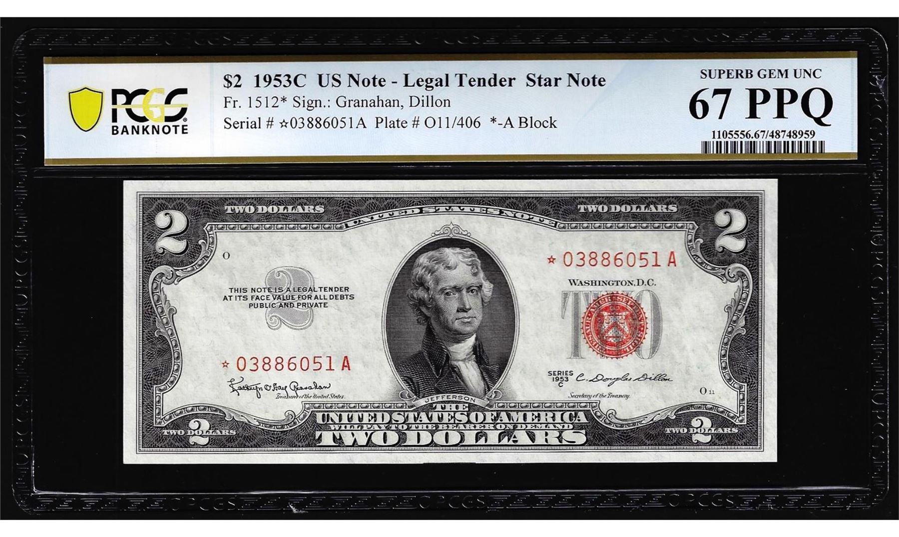 1953C $2 Legal Tender STAR Note Fr.1512* PCGS Superb Gem Uncirculated 67PPQ