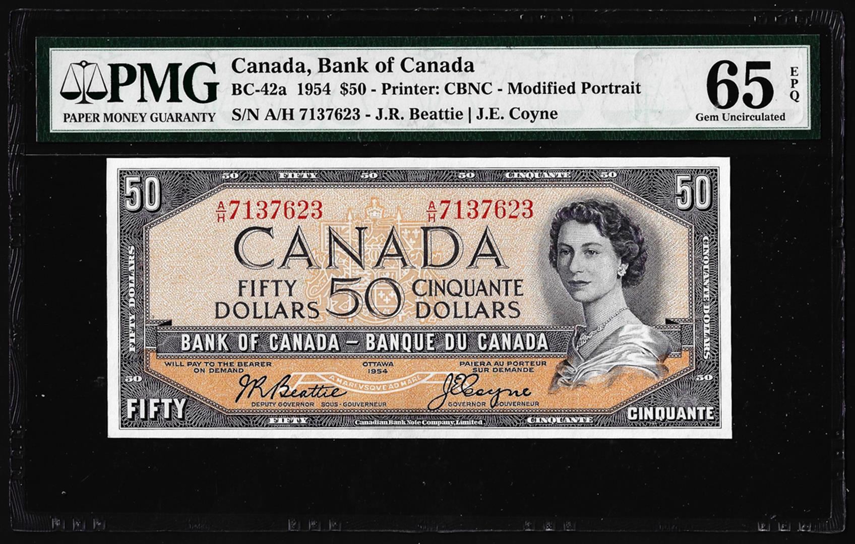 1954 $50 Bank of Canada Note BC-42a PMG Gem Uncirculated 65EPQ