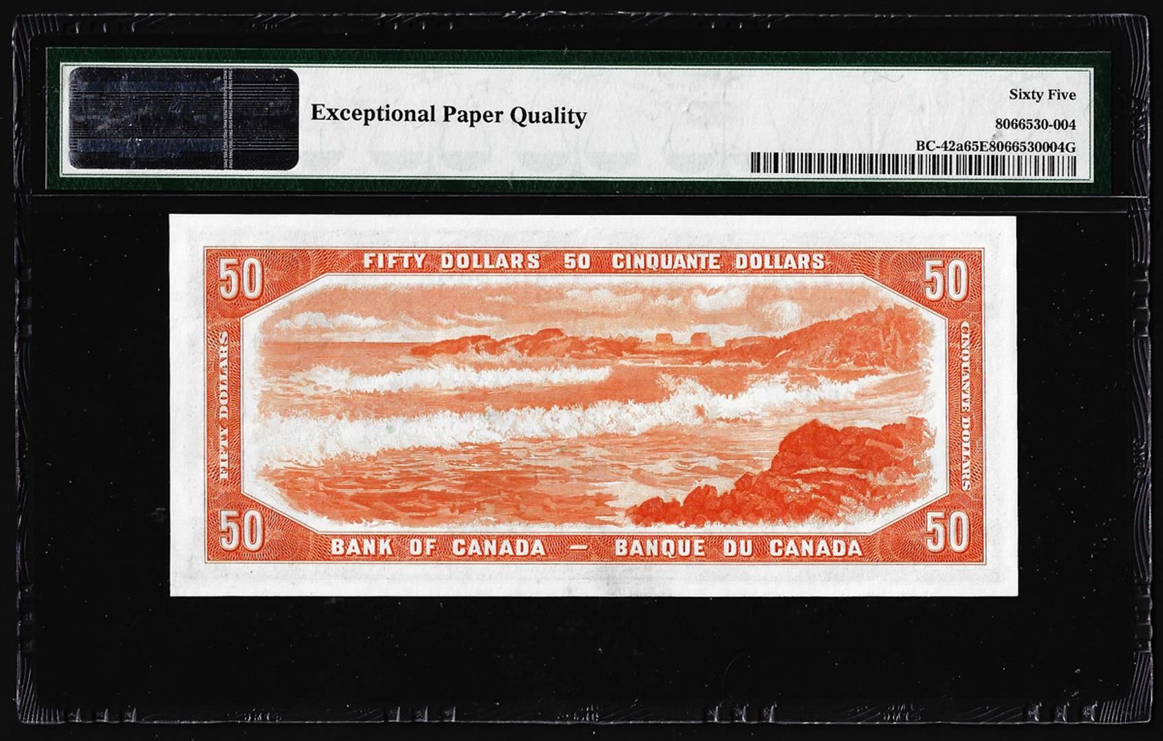 One 1954 $50 Bank of Canada Note BC-42a PMG Gem Uncirculated 65EPQ. PMG Certified.