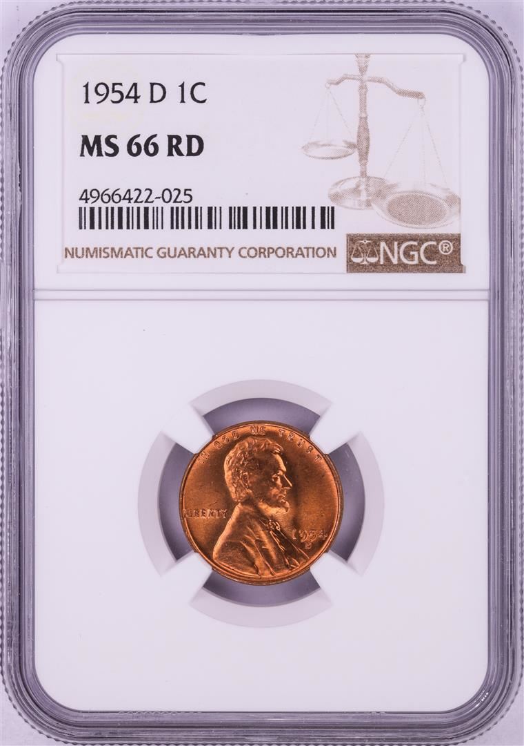 One 1954-D Lincoln Wheat Cent Coin NGC MS66RD. NGC Certified.
