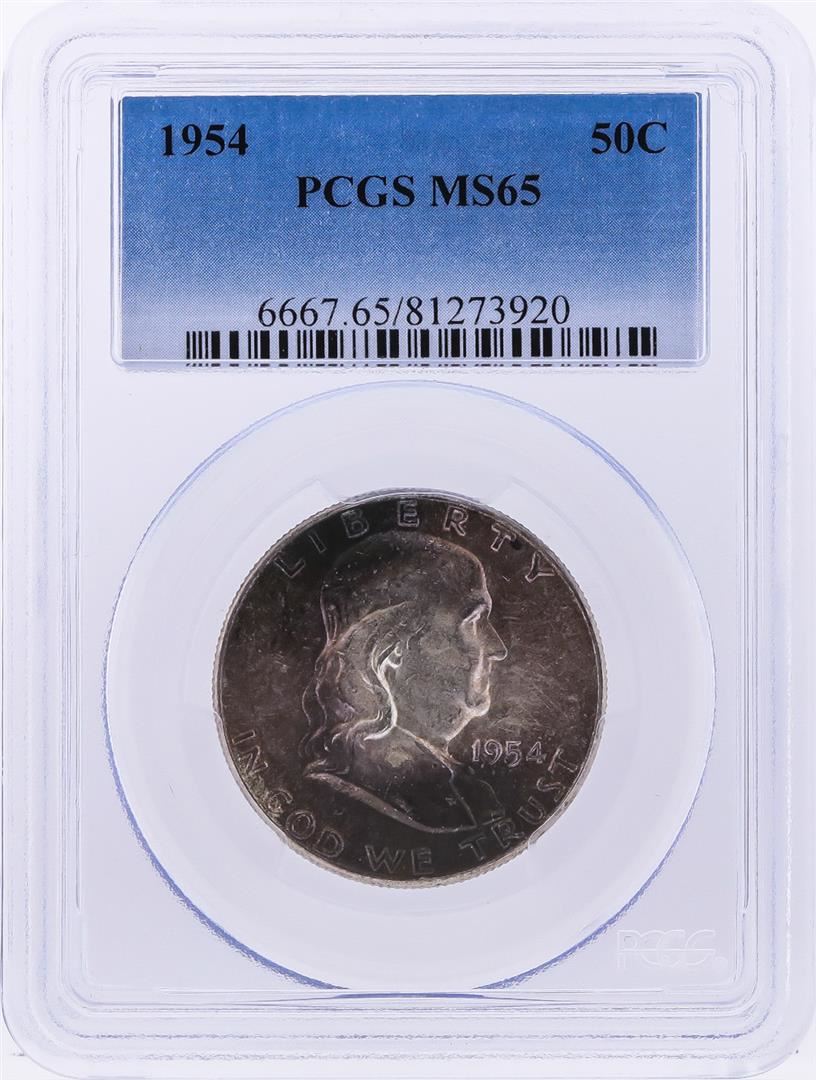 One 1954 Franklin Half Dollar Coin PCGS MS65. PCGS Graded.