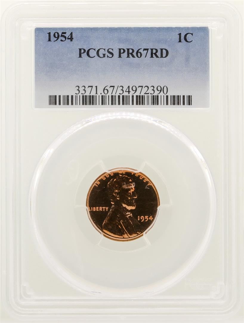 One 1954 Lincoln Wheat Cent Proof Coin PCGS PR67RD. PCGS Graded.