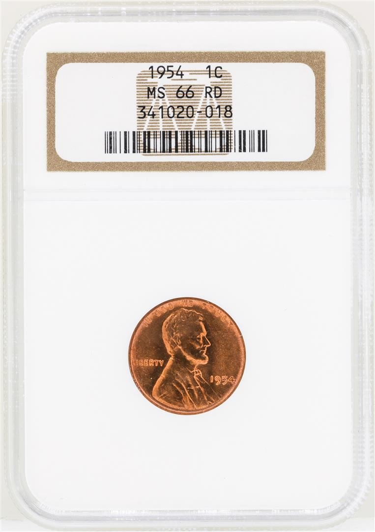 One 1954 Lincoln Wheat Penny Coin NGC MS66RD. NGC Certified.