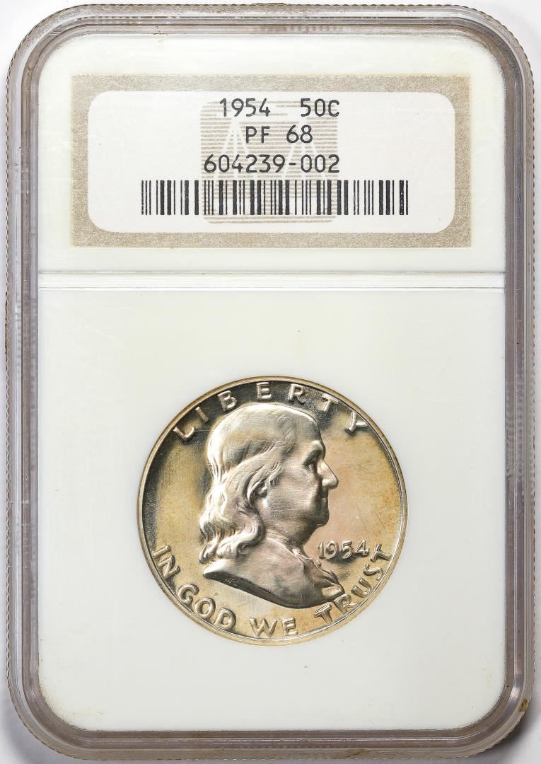 One 1954 Proof Franklin Half Dollar Coin NGC PF68 . NGC Certified.