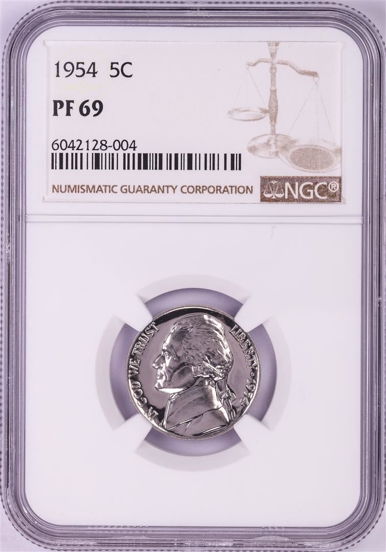 One 1954 Proof Jefferson Nickel Coin NGC PF69. NGC Certified.