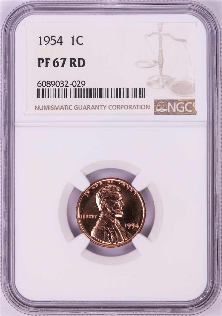 One 1954 Proof Lincoln Wheat Cent Coin NGC PF67RD. NGC Certified.