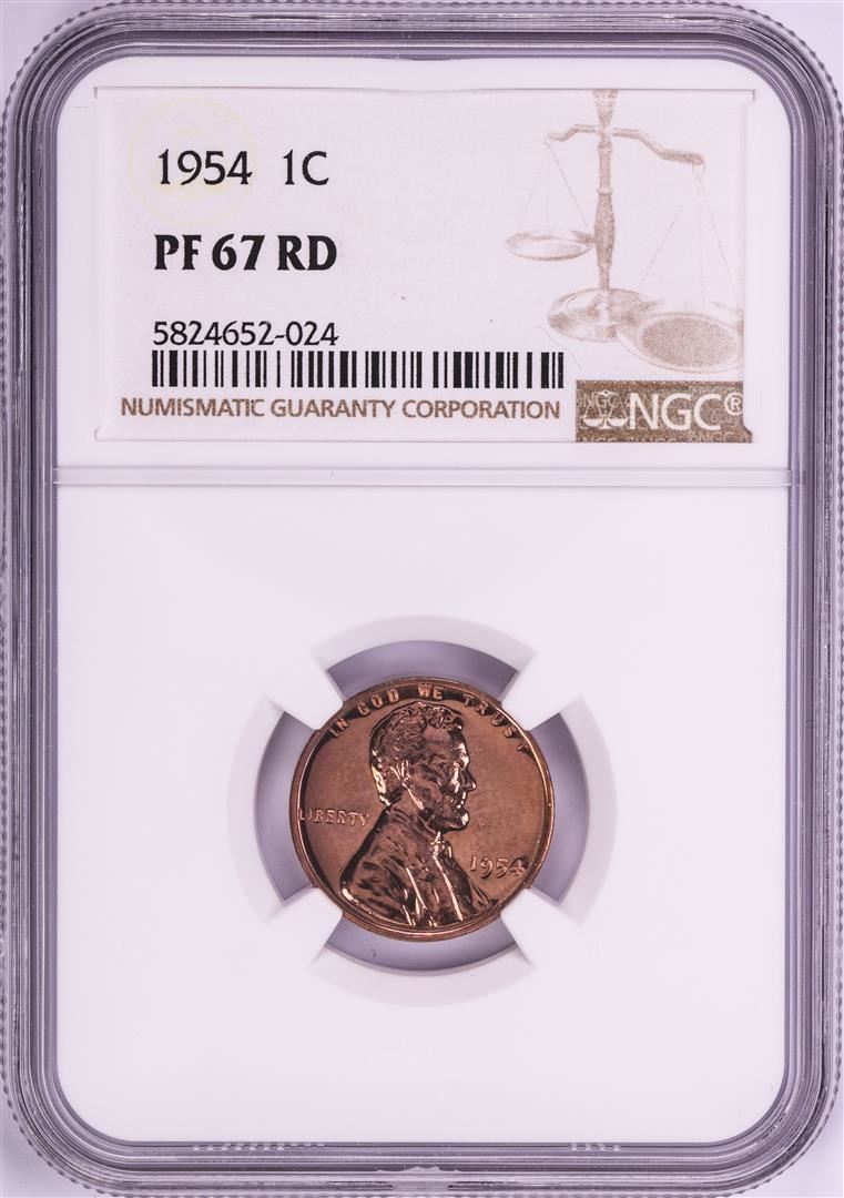 One 1954 Proof Lincoln Wheat Cent Coin NGC PF67RD. NGC Certified.