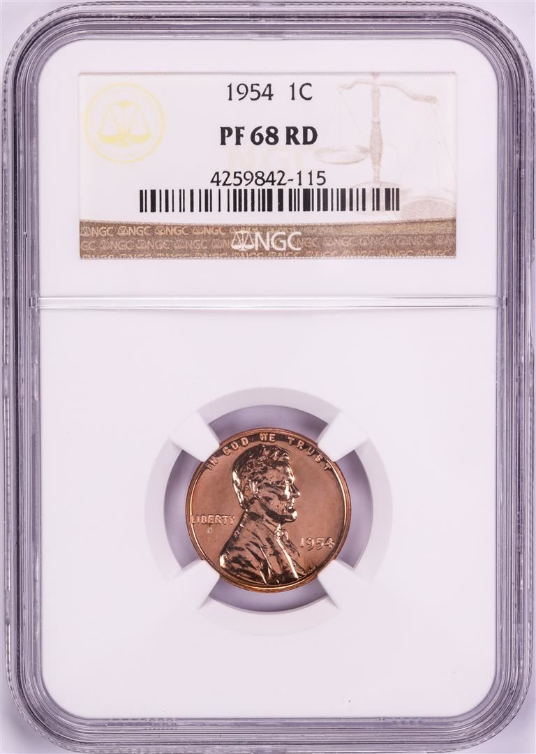 One 1954 Proof Lincoln Wheat Cent Coin NGC PF68RD. NGC Certified.