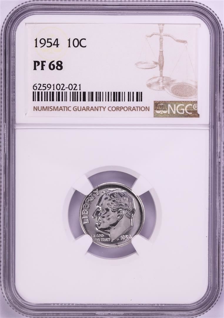 One 1954 Proof Roosevelt Dime Coin NGC PF68. NGC Certified.