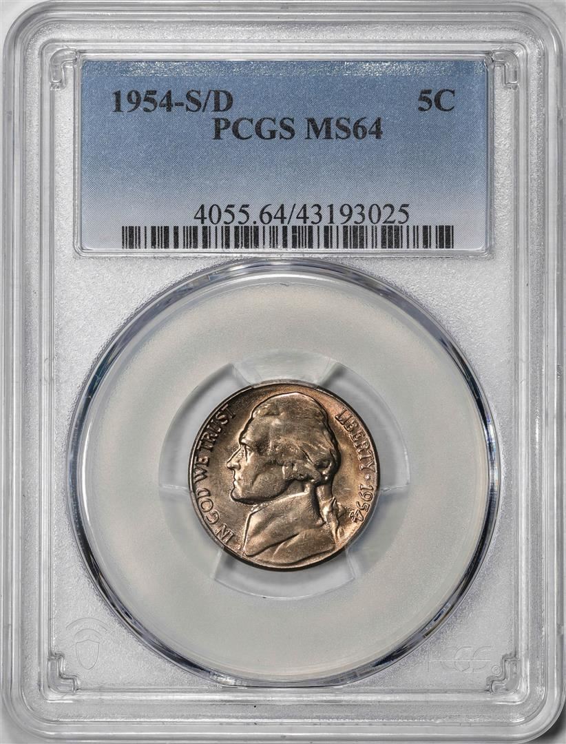 One 1954-S/D Jefferson Nickel Coin PCGS MS64. PCGS Graded.
