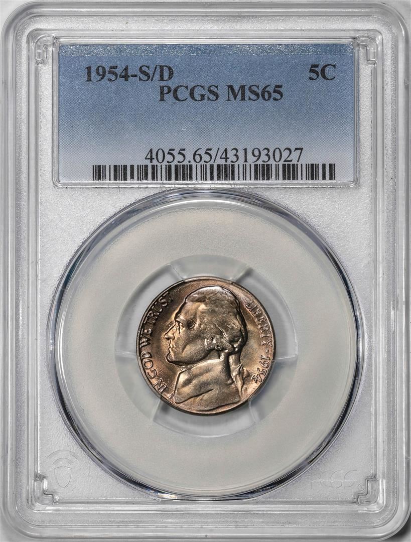 One 1954-S/D Jefferson Nickel Coin PCGS MS65. PCGS Graded.