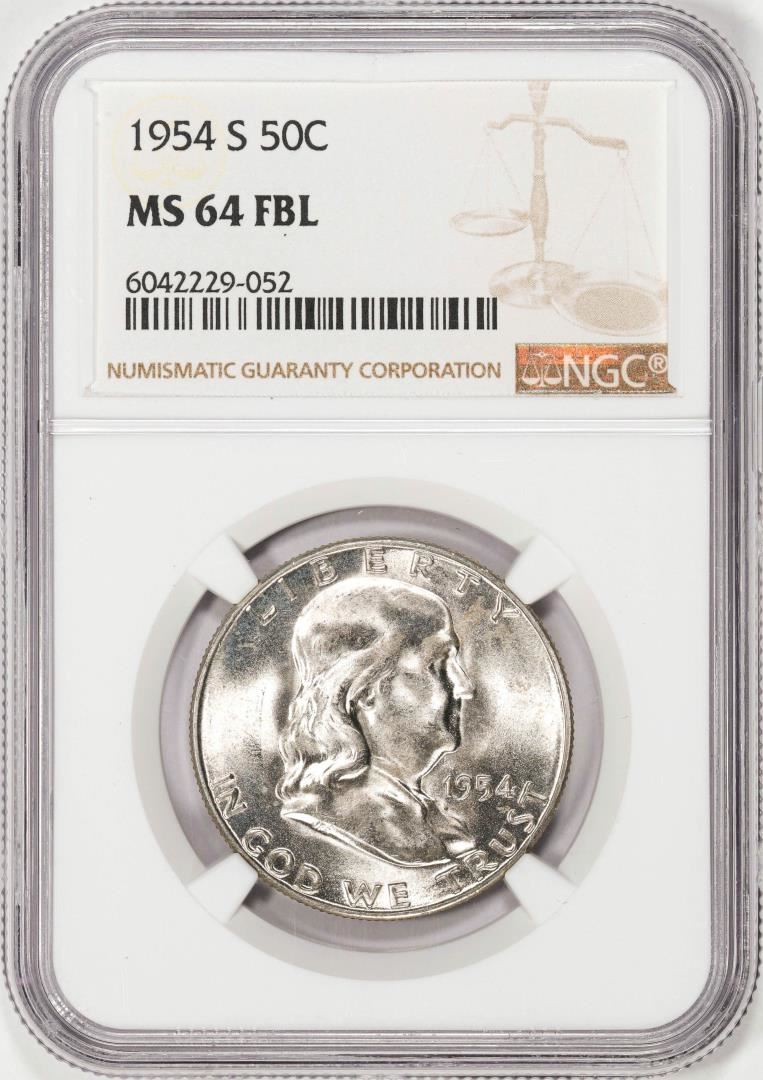 One 1954-S Franklin Half Dollar Coin NGC MS64FBL. NGC Certified.