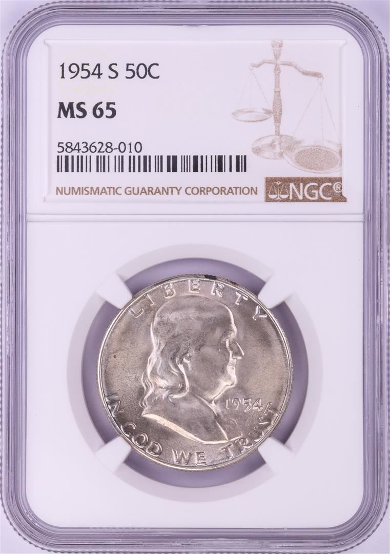 One 1954-S Franklin Half Dollar Coin NGC MS65. NGC Certified.