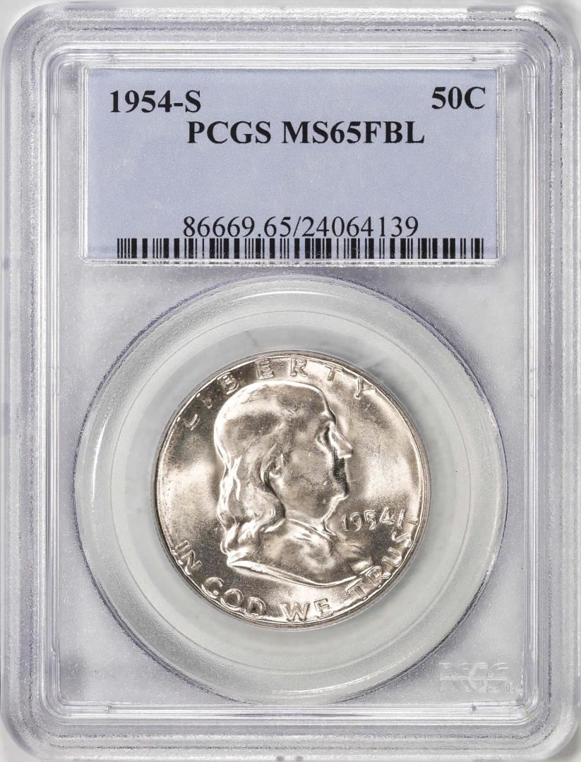 One 1954-S Franklin Half Dollar Coin PCGS MS65FBL. PCGS Graded.