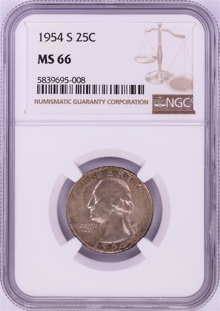 One 1954-S Washington Quarter Coin NGC MS66. NGC Certified.