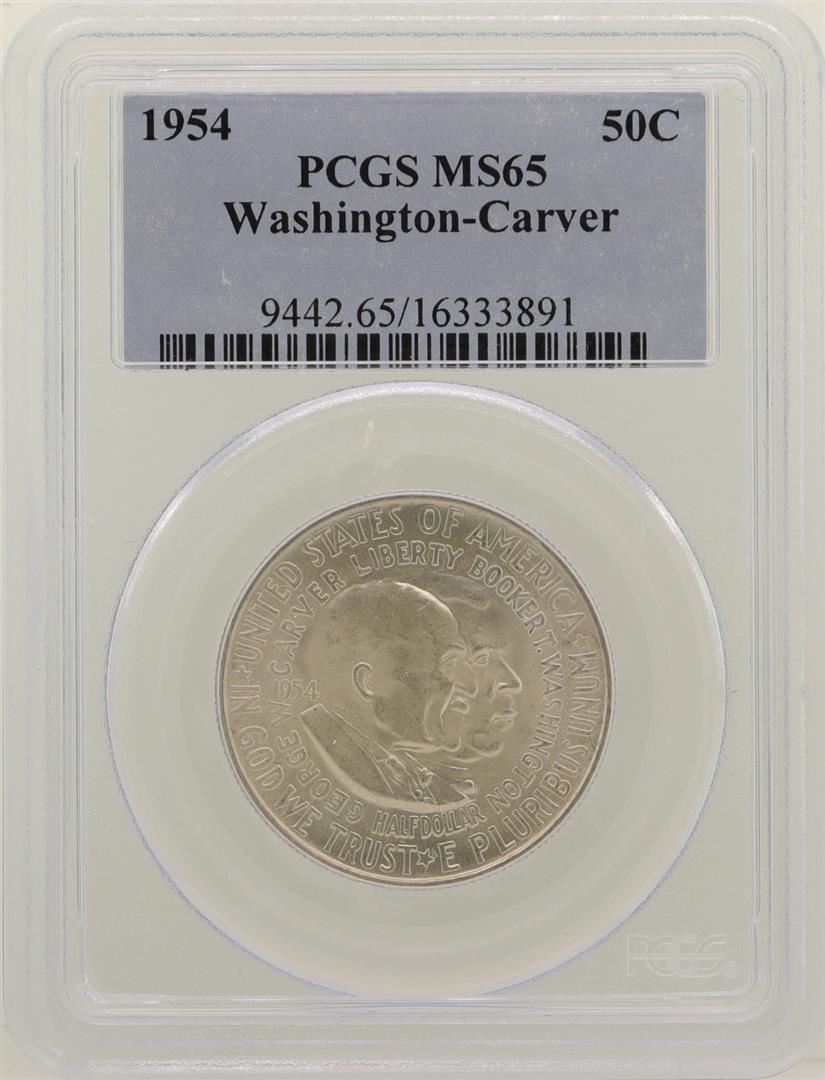 One 1954 Washington-Carver Commemorative Half Dollar Coin PCGS Graded MS65. PCGS Graded.