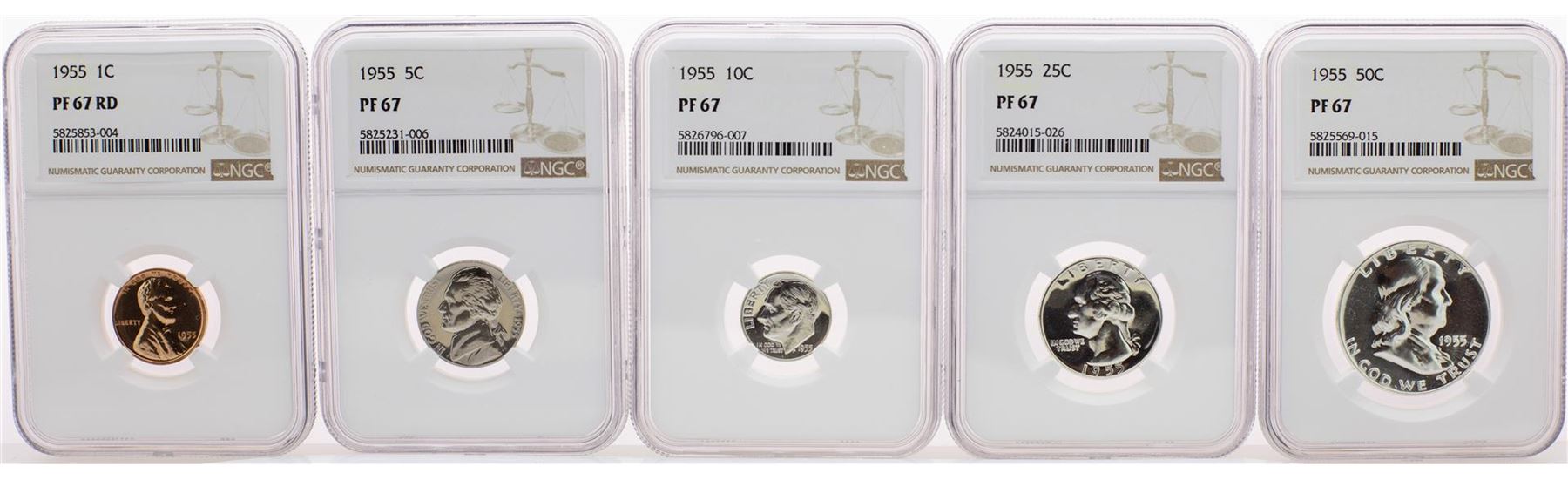 One 1955 (5) Coin Proof Set Graded NGC PF67. NGC Certified.