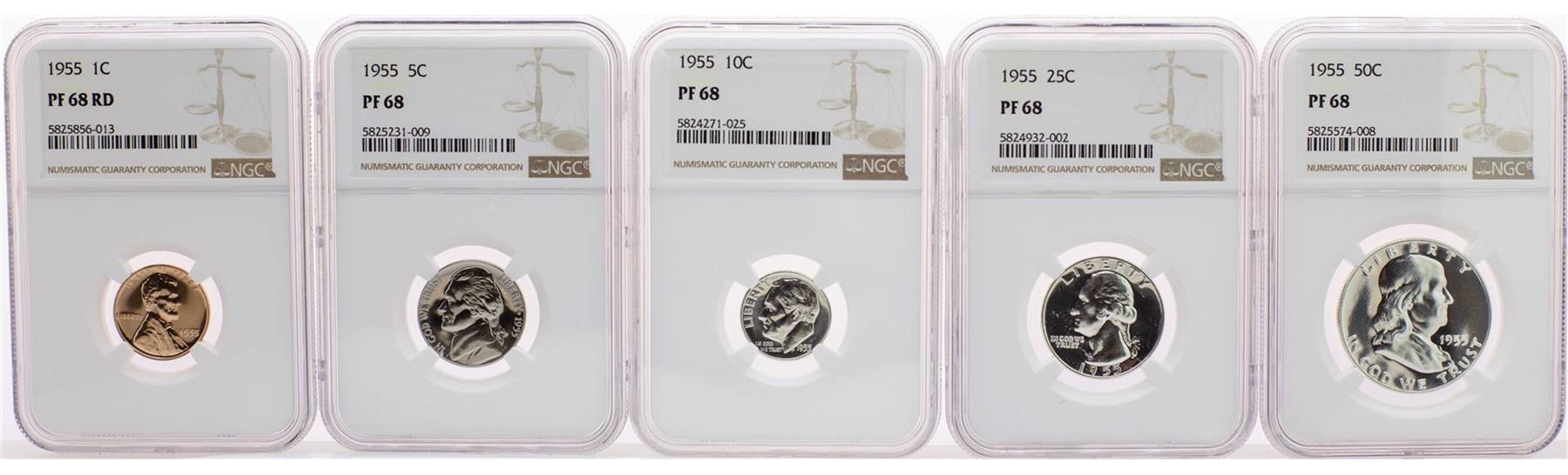 One 1955 (5) Coin Proof Set Graded NGC PF68. NGC Certified.