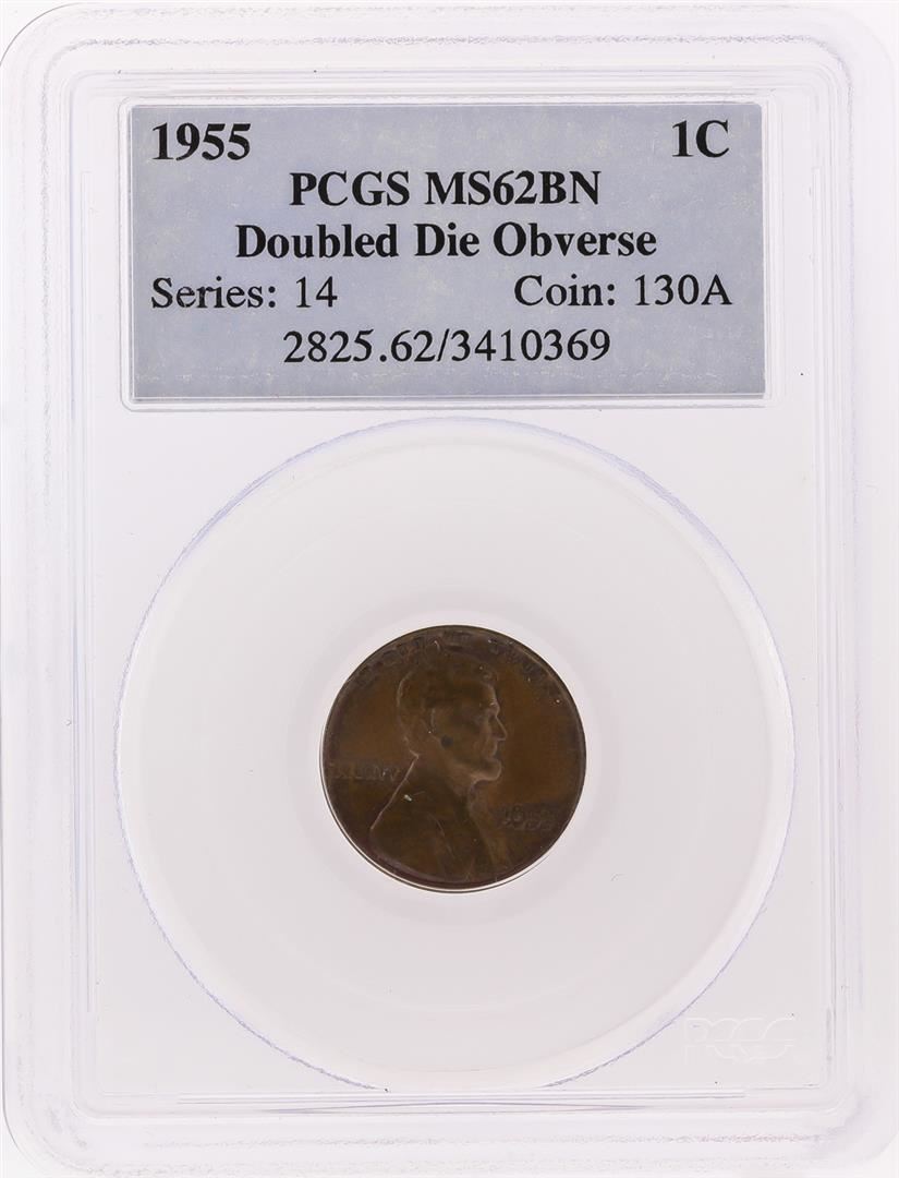 One 1955 Double Die Lincoln Cent PCGS Graded MS62BN. PCGS Graded.