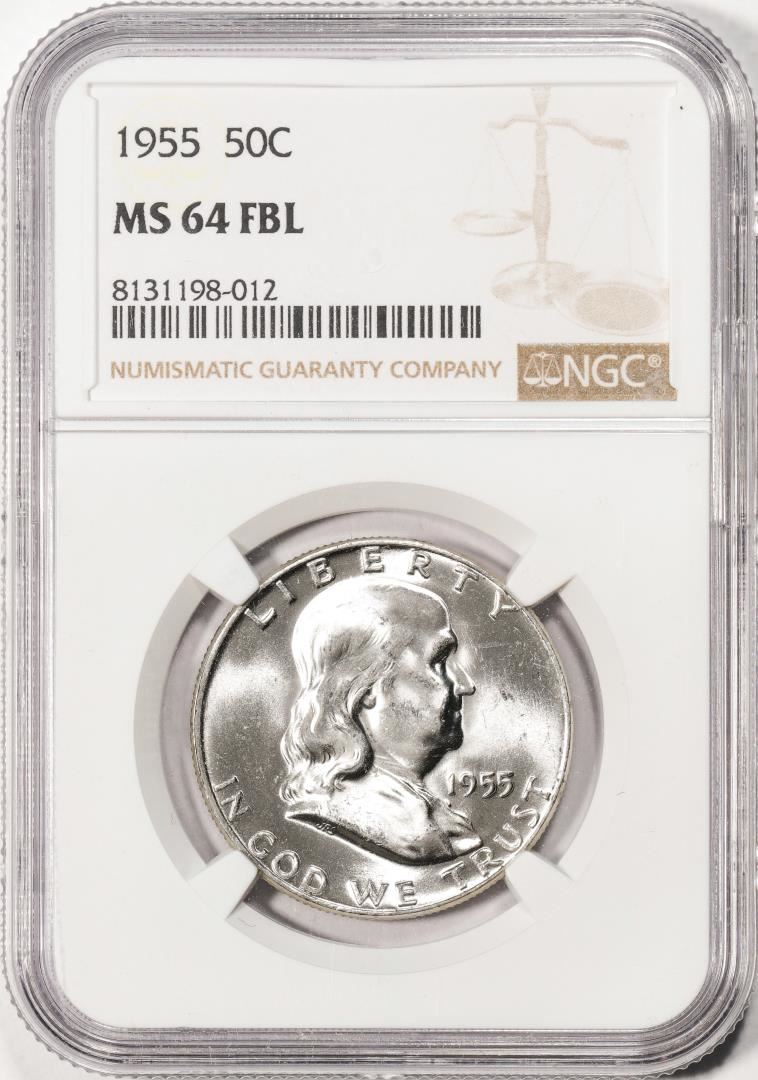 One 1955 Franklin Half Dollar Coin NGC MS64FBL . NGC Certified.