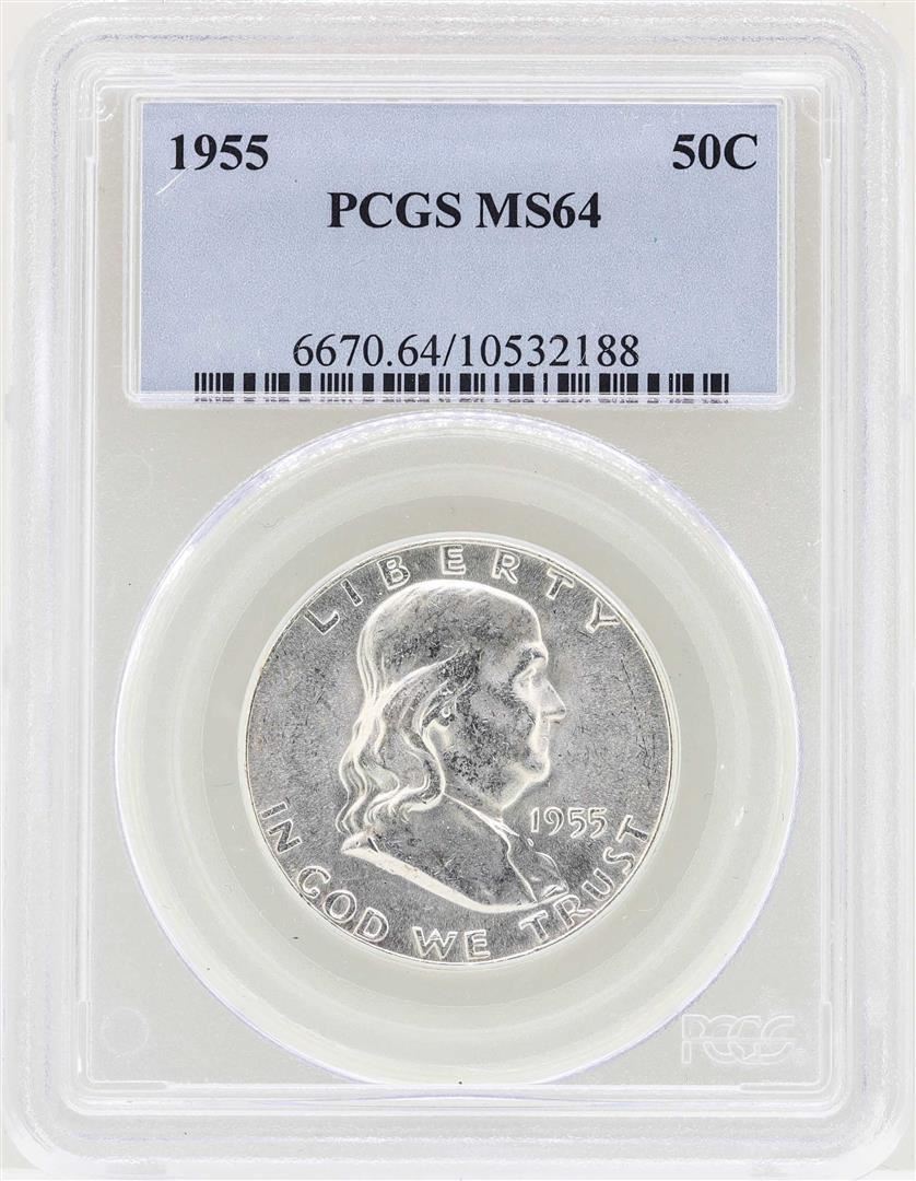 One 1955 Franklin Half Dollar Coin NGC MS64. NGC Certified.