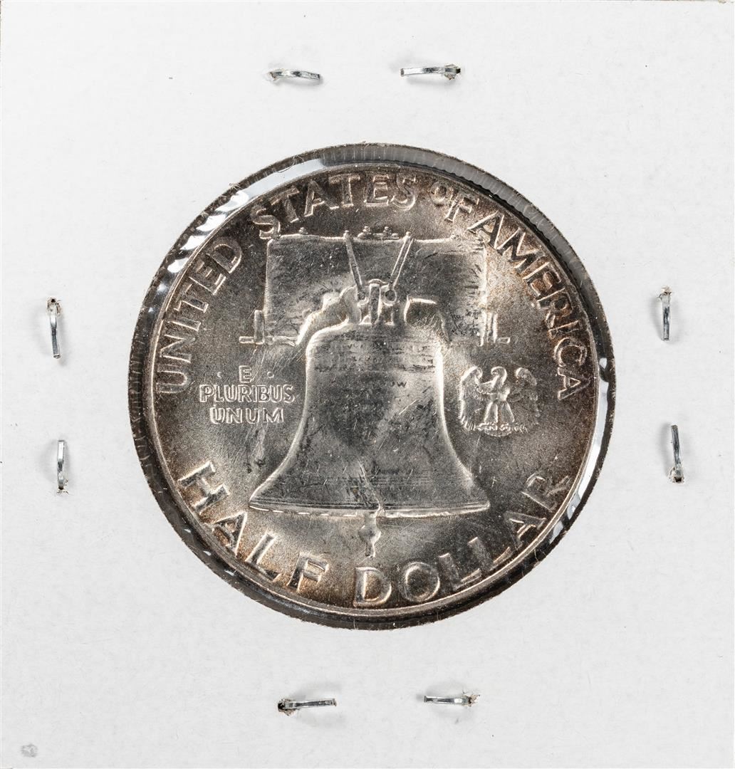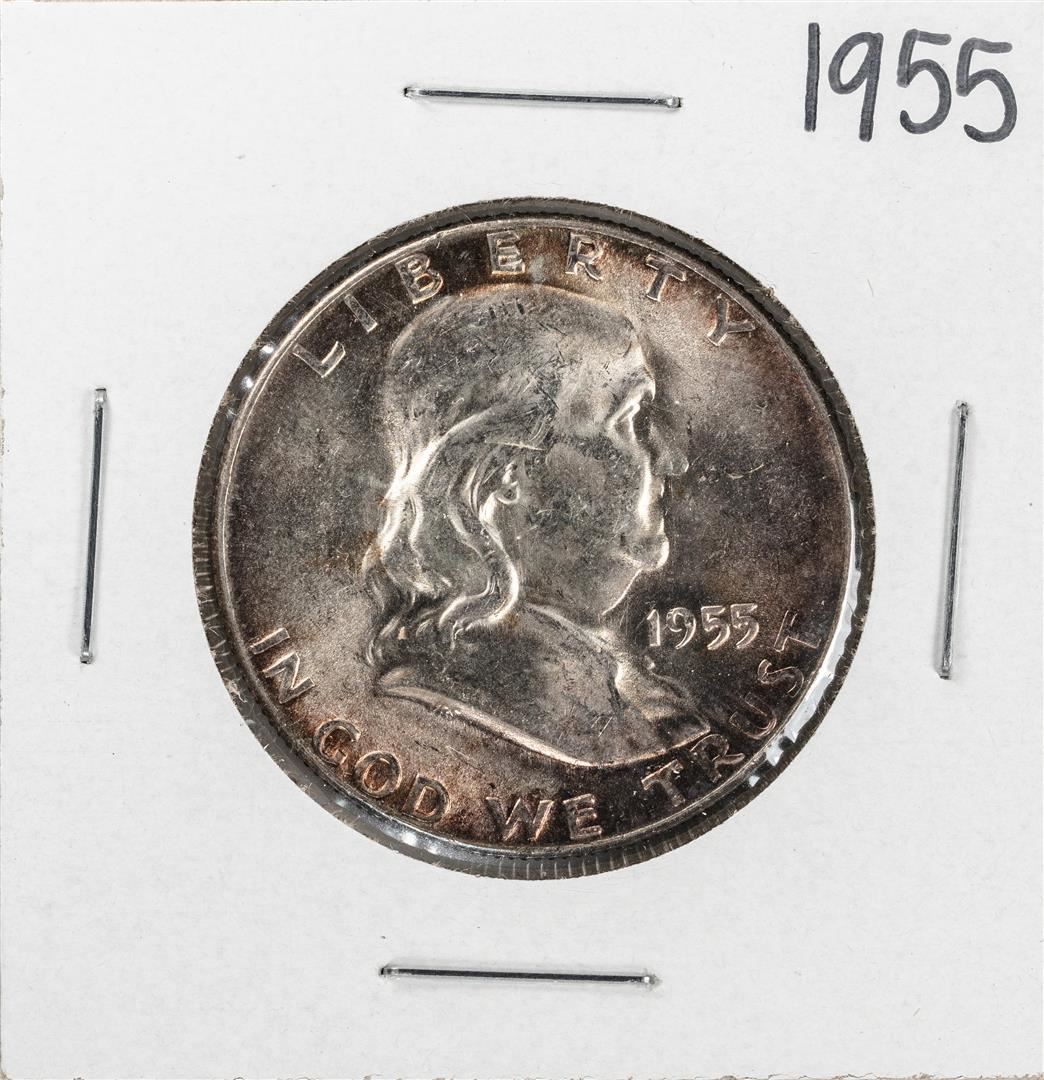 One 1955 Franklin Half Dollar Coin Nice Toning.