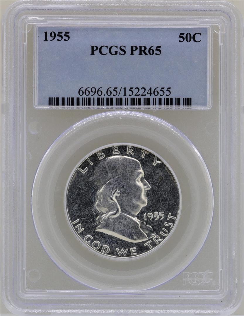 One 1955 Franklin Half Dollar Proof Coin PCGS PR65. PCGS Graded.