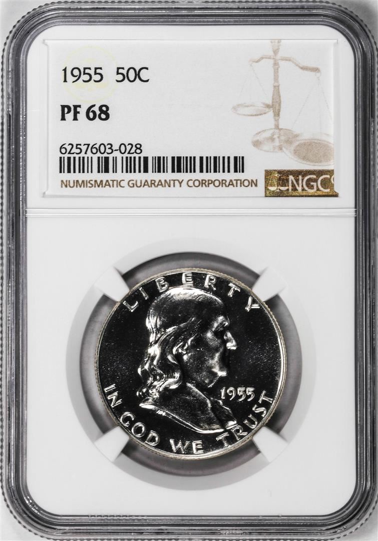 One 1955 Proof Franklin Half Dollar Coin NGC PF68. NGC Certified.