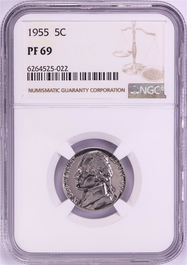 One 1955 Proof Jefferson Nickel Coin NGC PF69. NGC Certified.