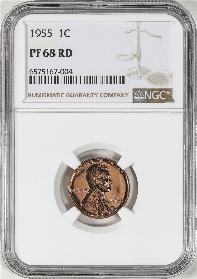 One 1955 Proof Lincoln Wheat Cent Coin NGC PF68RD. NGC Certified.