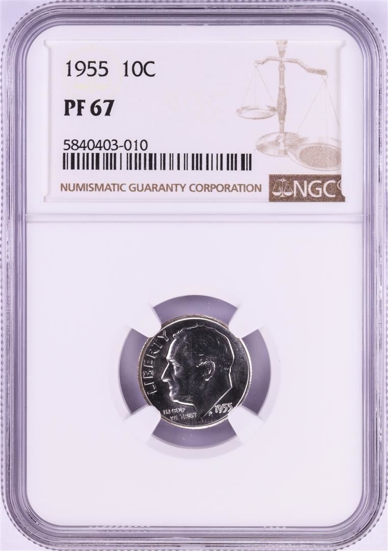 One 1955 Proof Roosevelt Dime Coin NGC PF67.