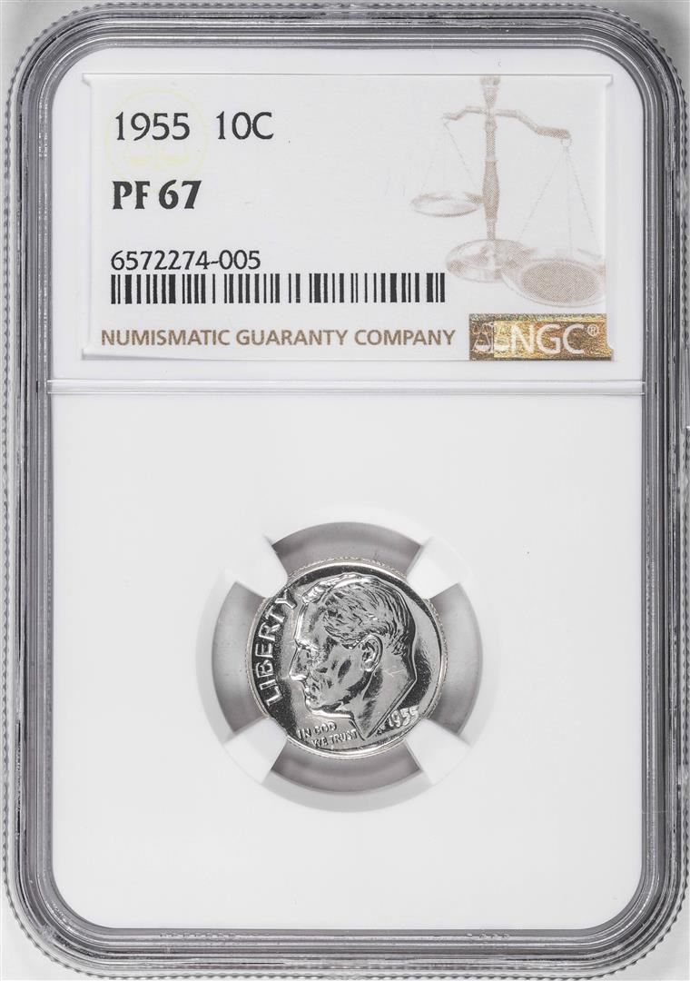 One 1955 Proof Roosevelt Dime Coin NGC PF67. NGC Certified.
