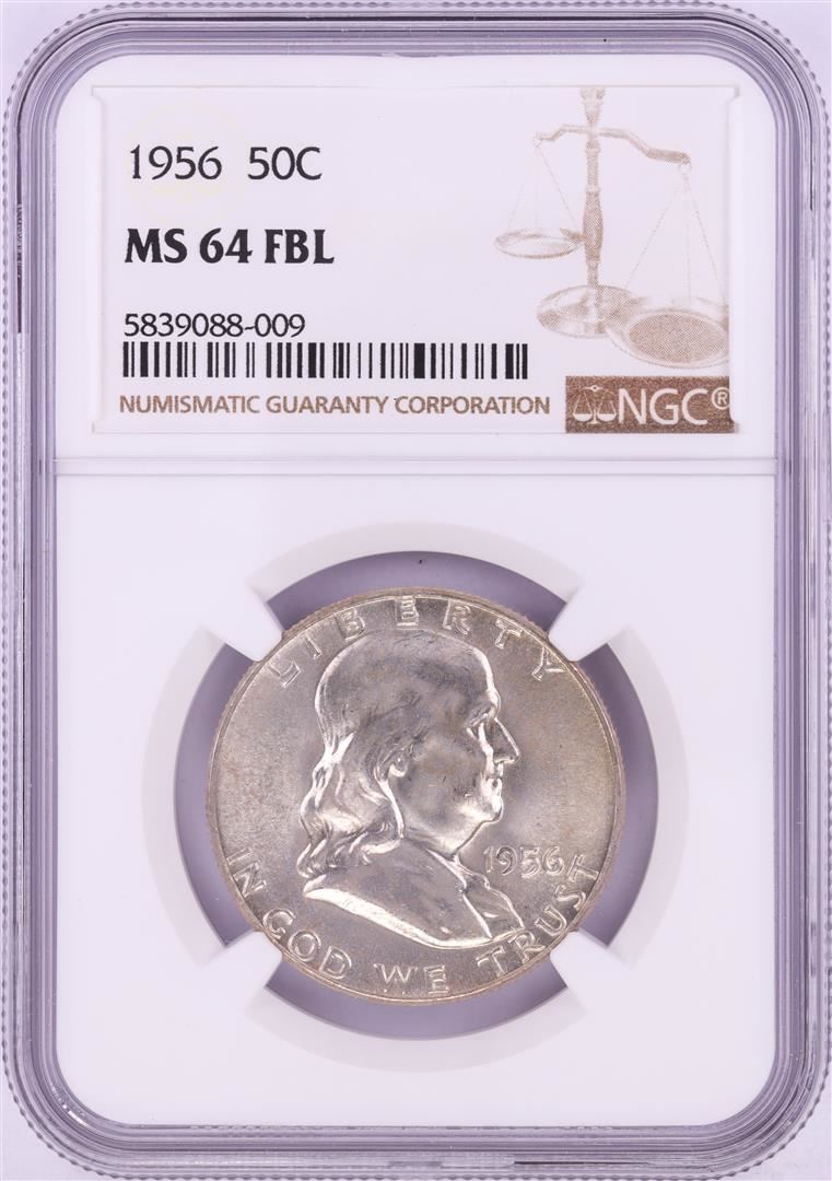 One 1956 Franklin Half Dollar Coin NGC MS64FBL. NGC Certified.