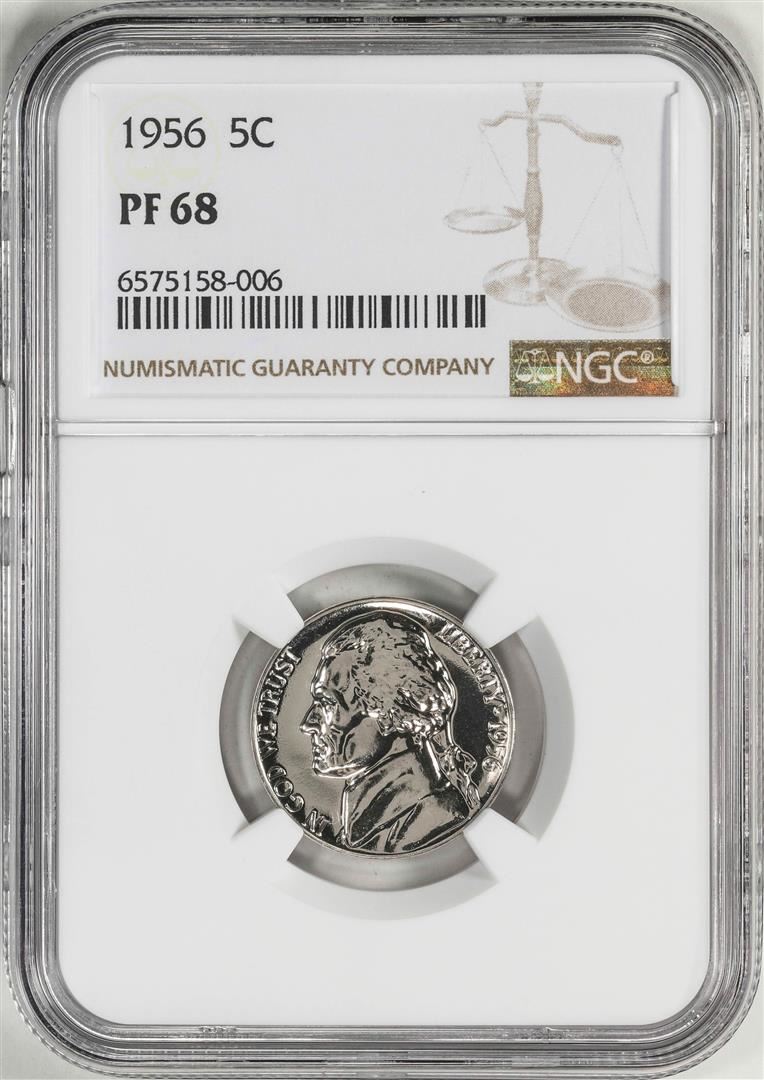 One 1956 Proof Jefferson Nickel Coin NGC PF68. NGC Certified.
