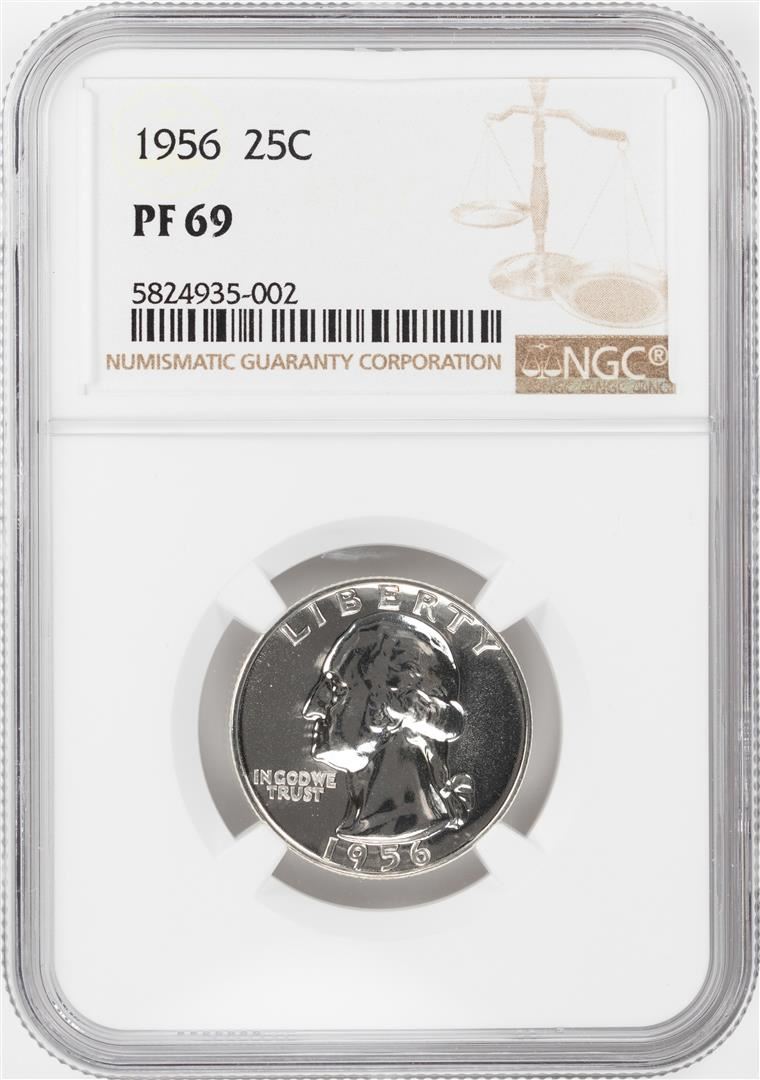 One 1956 Proof Washington Quarter Coin NGC PF69. NGC Certified.