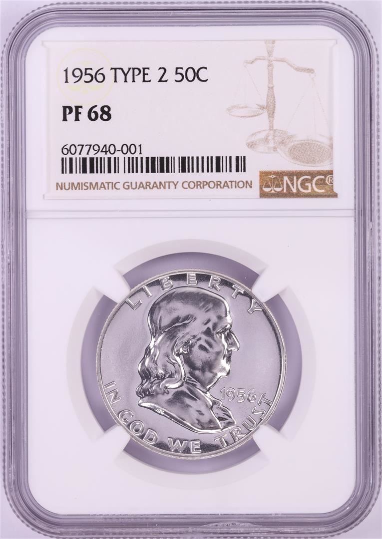 One 1956 Type 2 Proof Franklin Half Dollar Coin NGC PF68. NGC Certified.