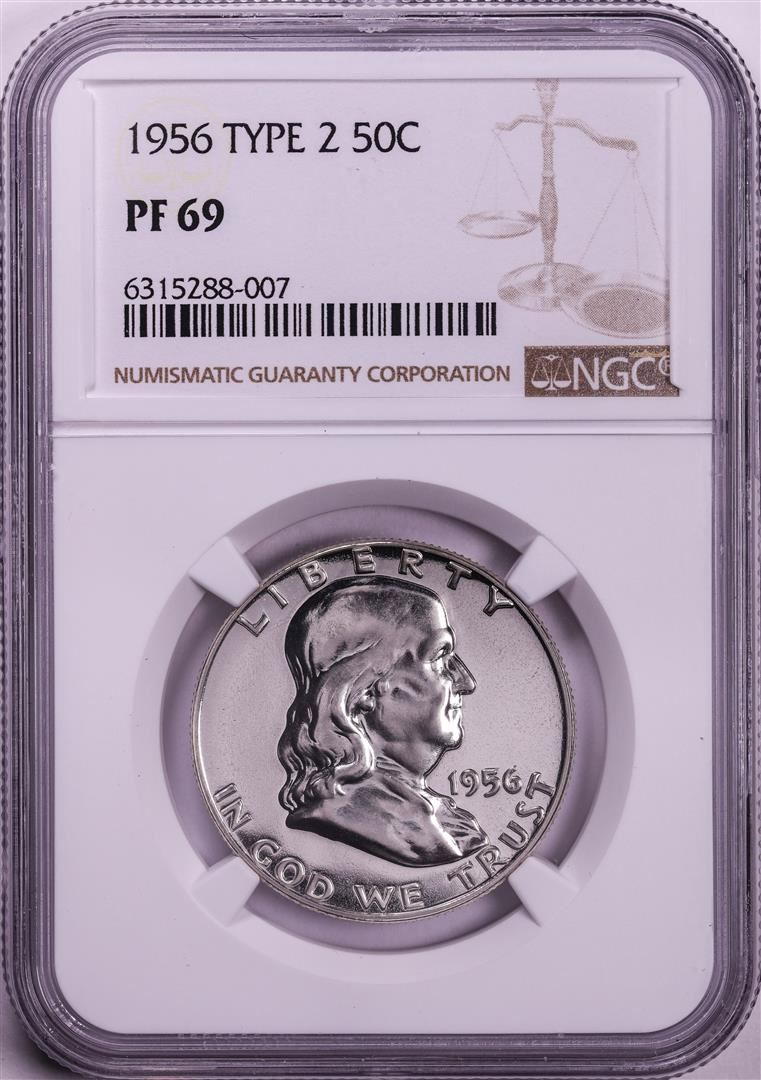 One 1956 Type 2 Proof Franklin Half Dollar Coin NGC PF69. NGC Certified.
