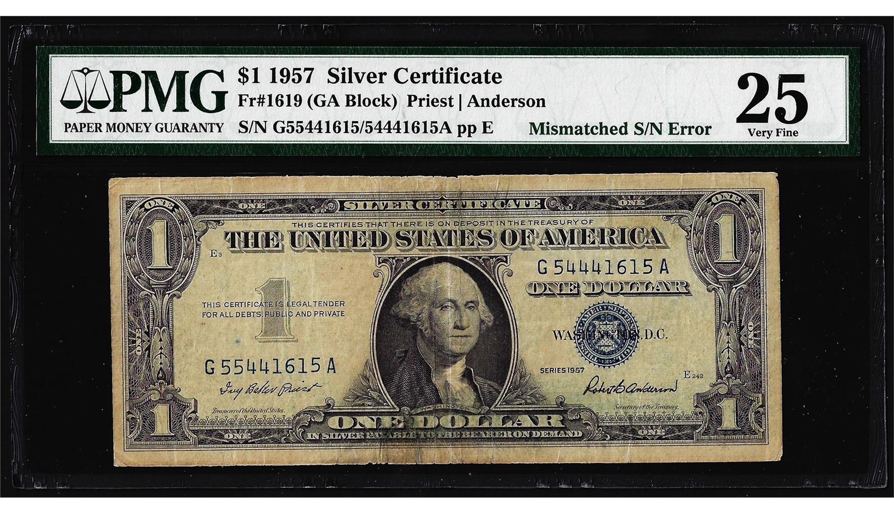 1957 $1 Silver Certificate Note Mismatched Serial Number ERROR PMG Very Fine 25