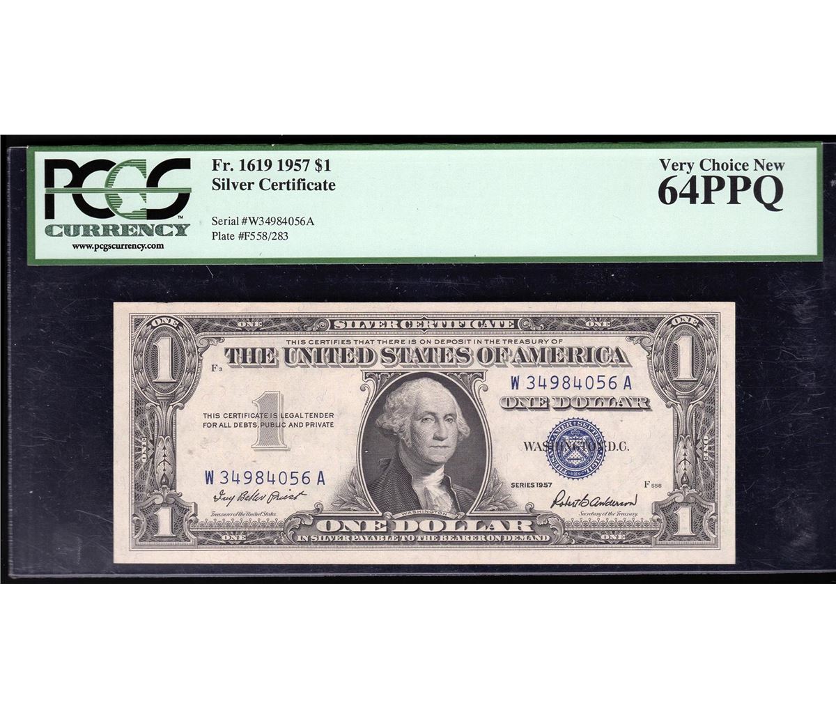 One 1957 $1 Silver Certificate Note PCGS 64PPQ Very Choice New. PCGS Graded.