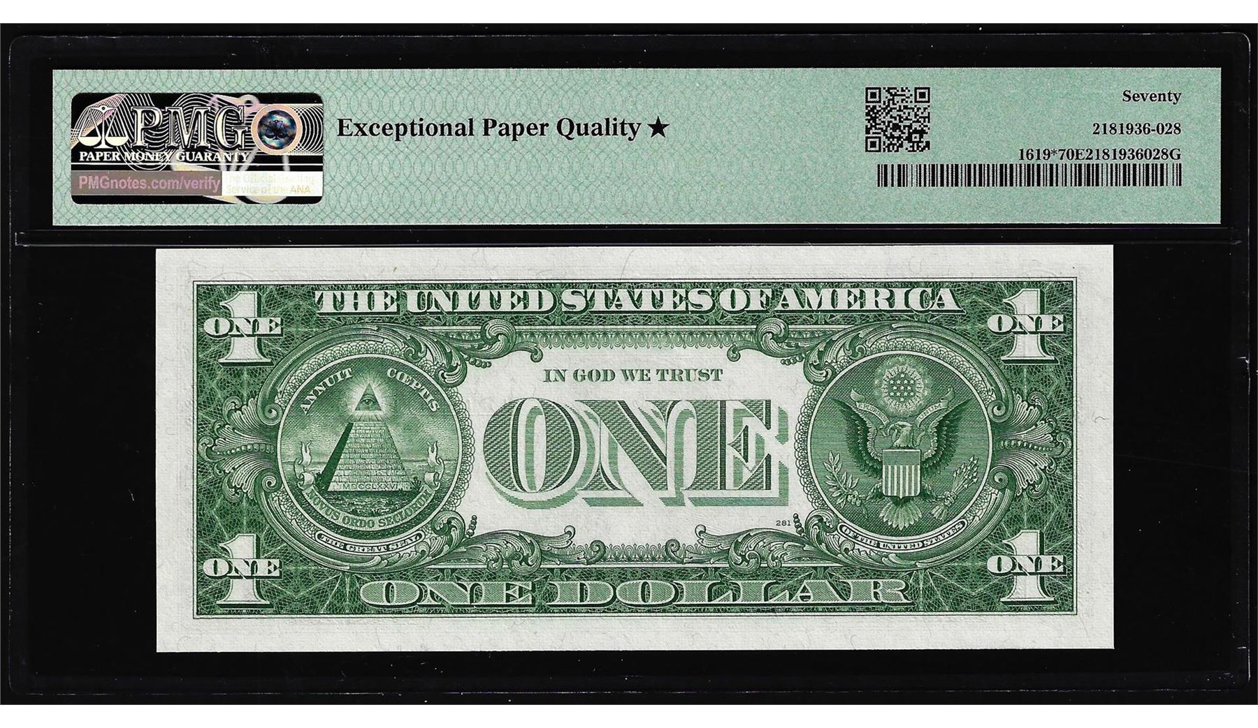 One 1957 $1 Silver Certificate Star Note Fr.1619* PMG Seventy Gem Uncirculated 70EPQ*. PMG Certified.