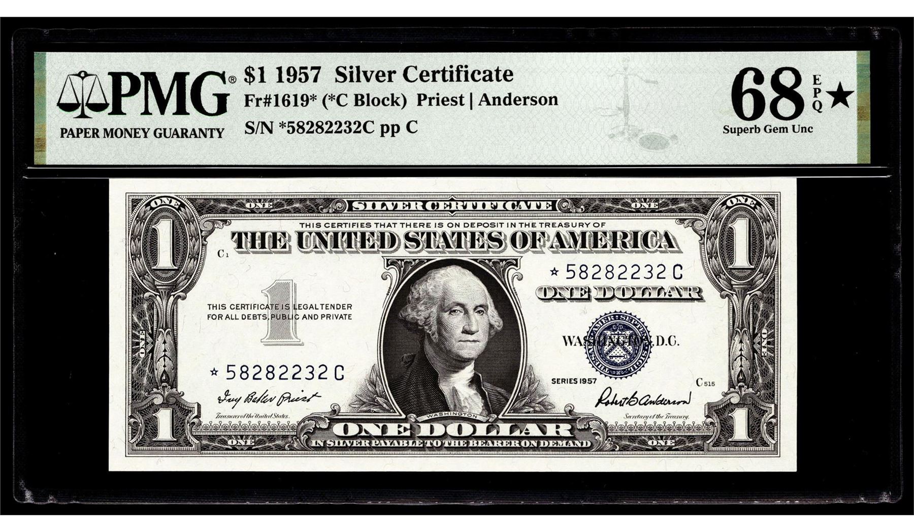 1957 $1 Silver Certificate Star Note Fr.1619* PMG Superb Gem Uncirculated 68EPQ* STAR
