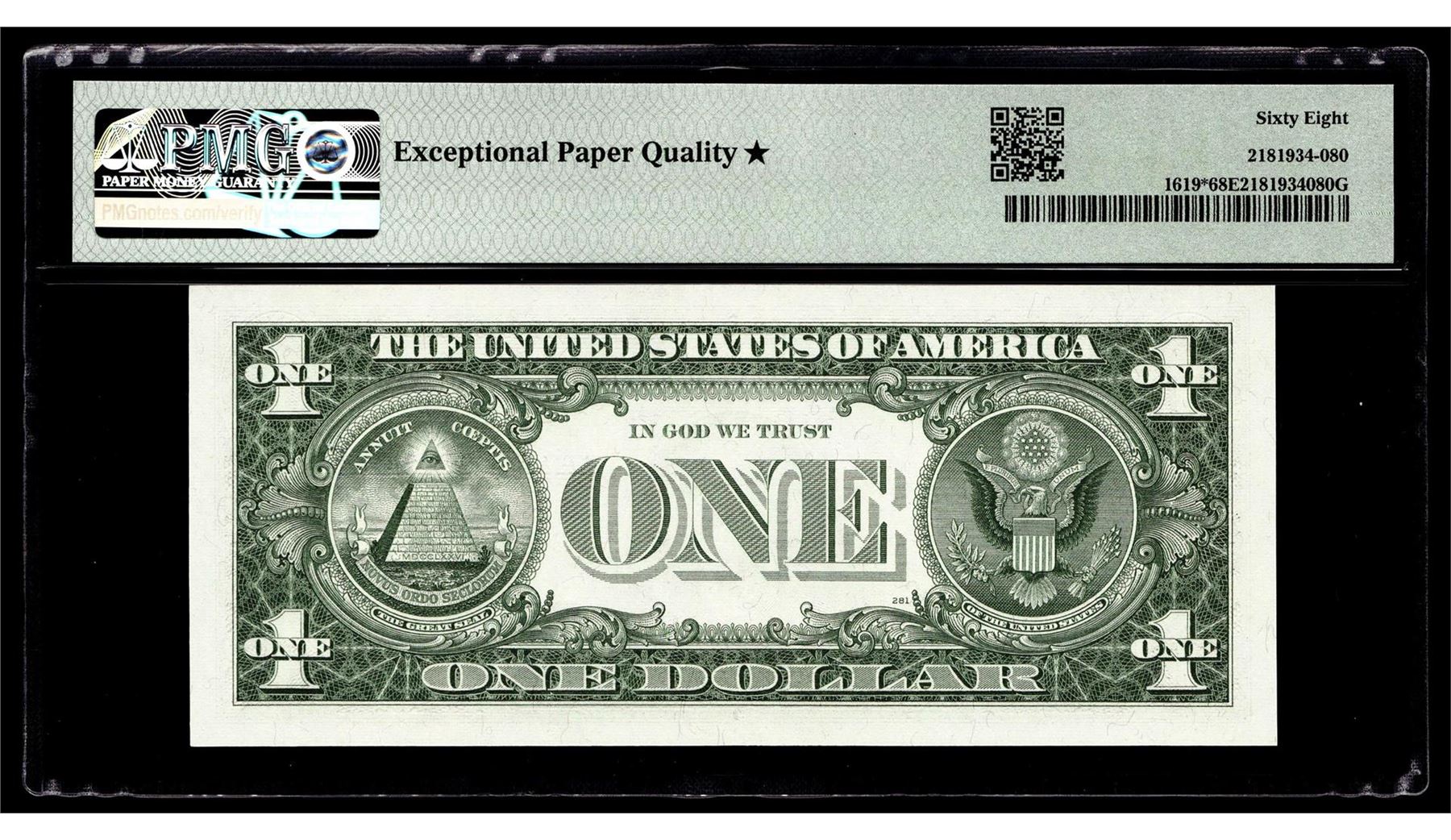 One 1957 $1 Silver Certificate Star Note Fr.1619* PMG Superb Gem Uncirculated 68EPQ* STAR. PMG Certified.