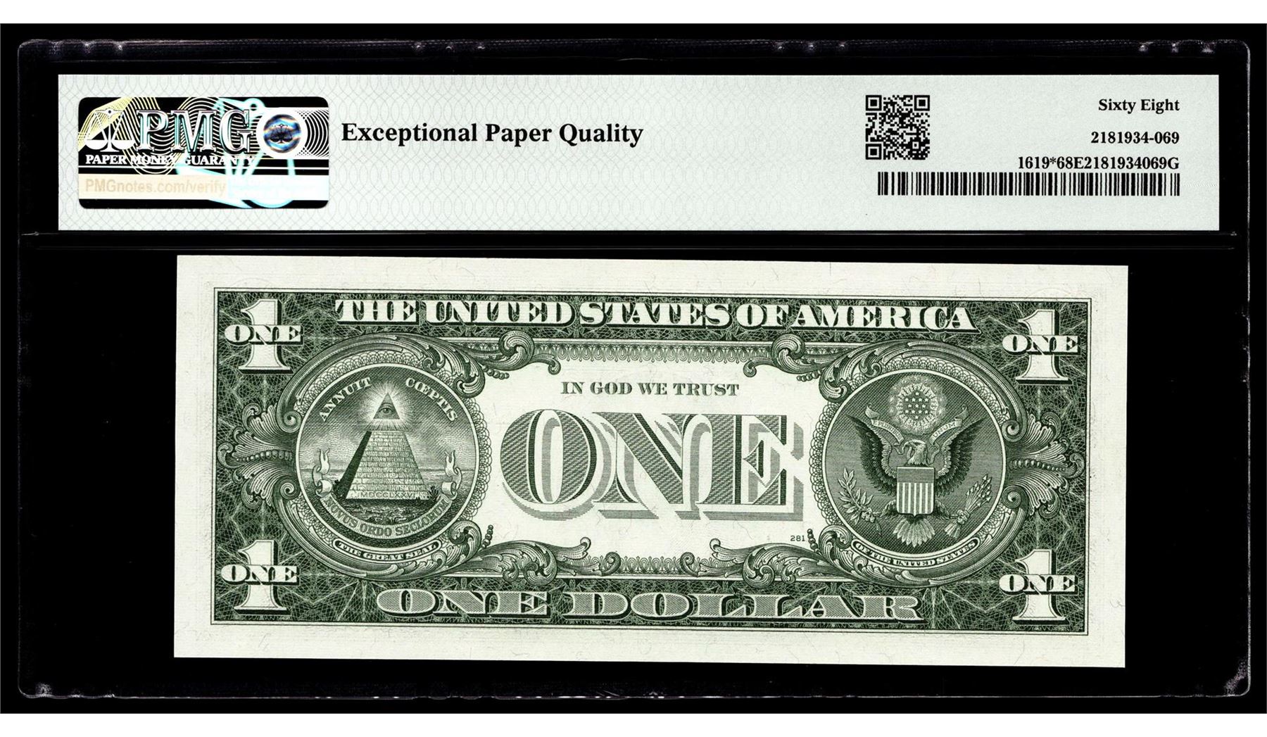 One 1957 $1 Silver Certificate Star Note Fr.1619* PMG Superb Gem Uncirculated 68EPQ. PMG Certified.