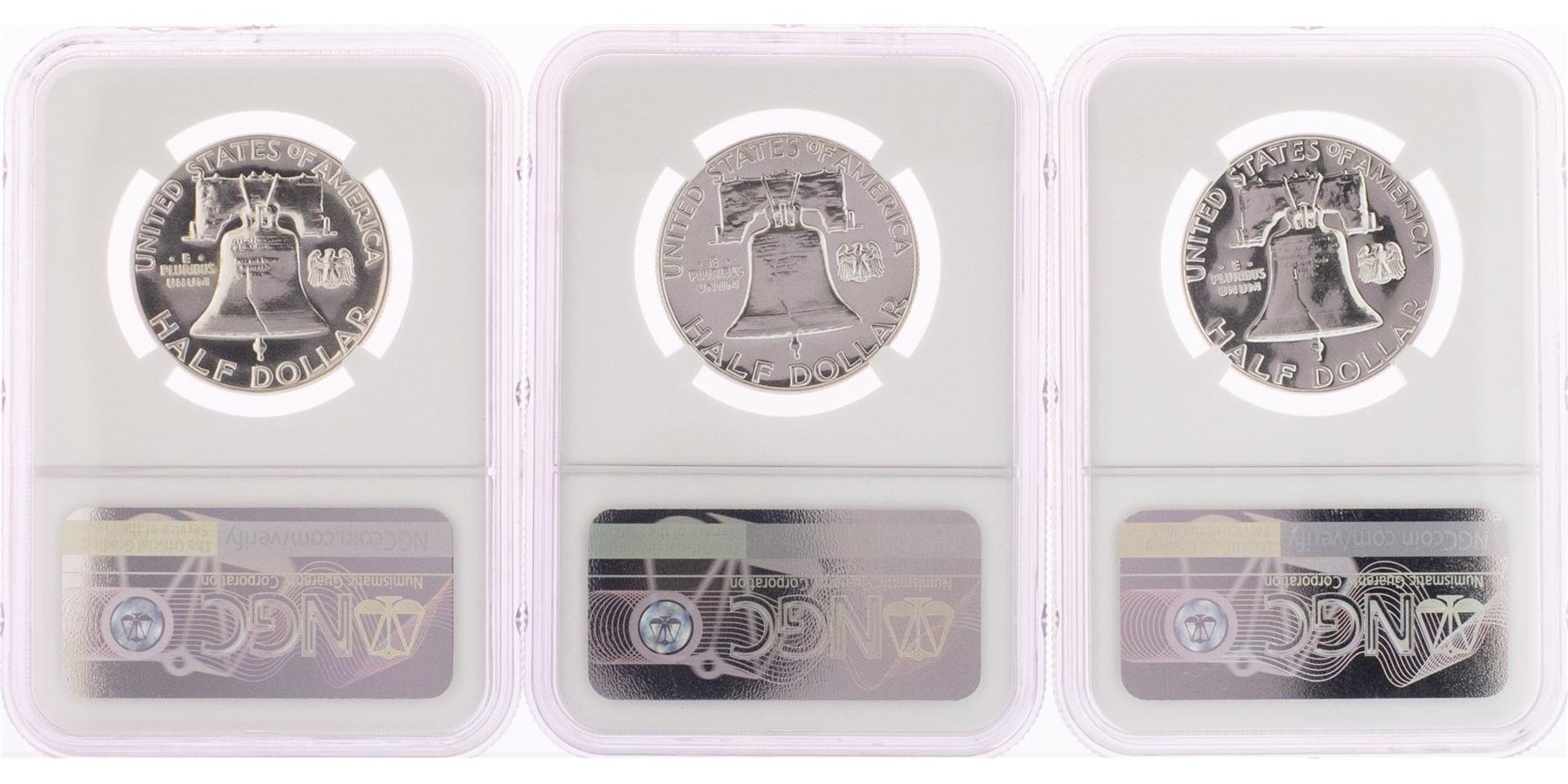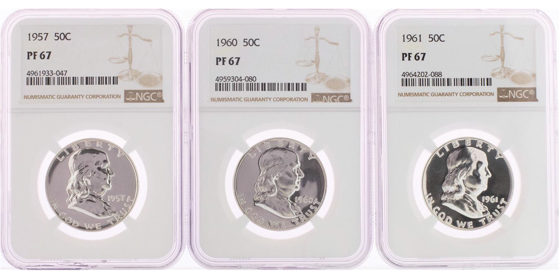 1957, 1960 & 1961 Franklin Half Dollar Coins NGC PF67 - Cracked Slabs
