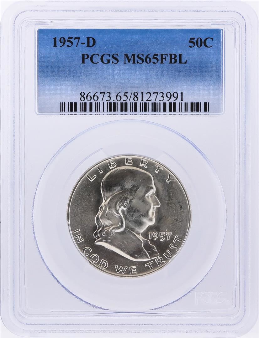 One 1957-D Franklin Half Dollar Coin PCGS MS65FBL. PCGS Graded.
