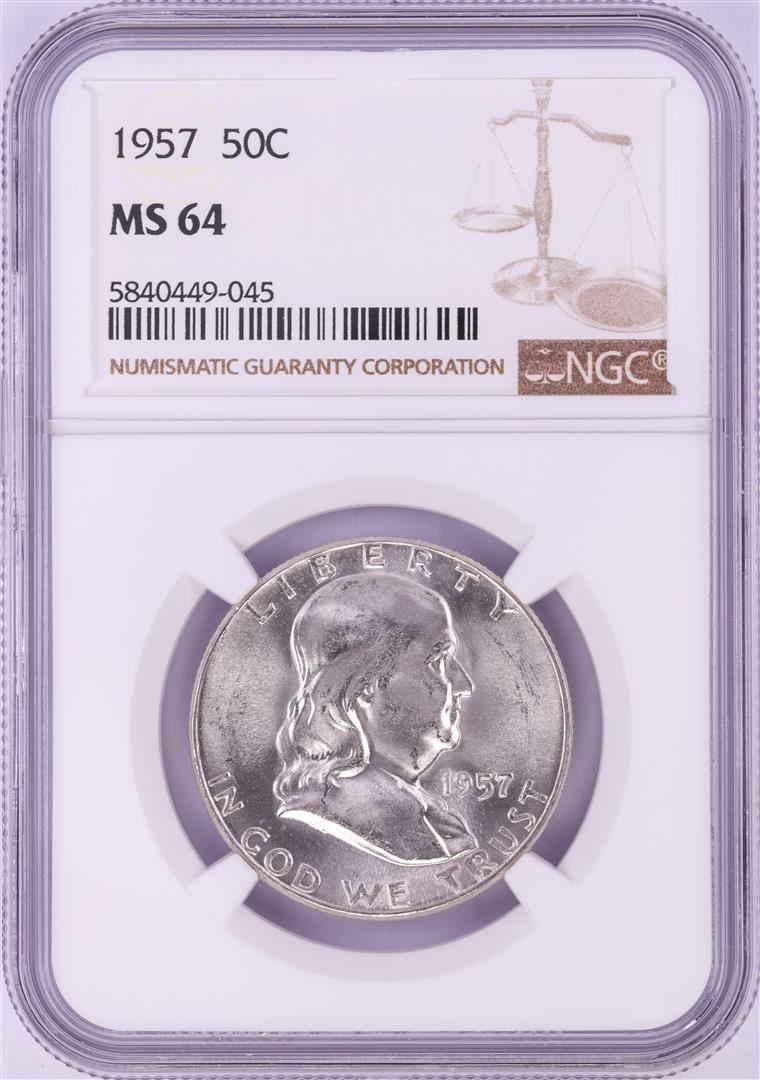 One 1957 Franklin Half Dollar Coin NGC MS64. NGC Certified.