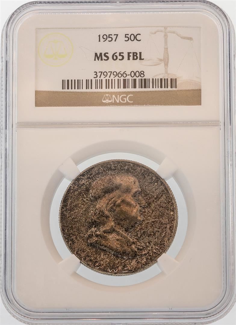 One 1957 Franklin Half Dollar Silver Coin NGC MS65FBL. NGC Certified.